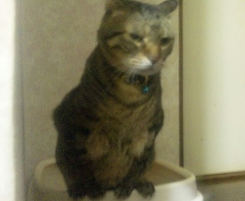 なぜかチャムは用を足すときは狭い足場に4本とも足をかけるんです。